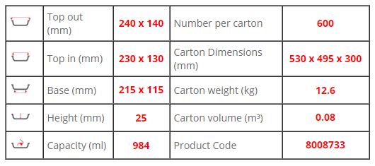 Perfectly suited for displaying fresh fruit, vegetables & meat. With a well considered design, which includes ribbed embossing and an engineered flange that adds just the right amount of strength and rigidity to the tray in order to hold weight well.