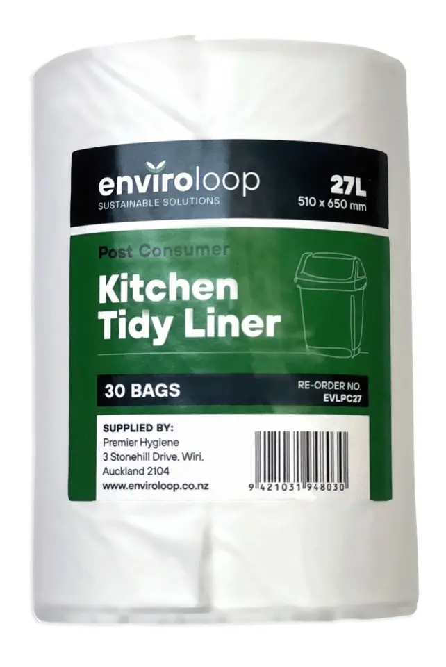 Enviroloop 27L 100% Post Consumer Rubbish Bag is strong and durable and perfect for small to medium sized bins.