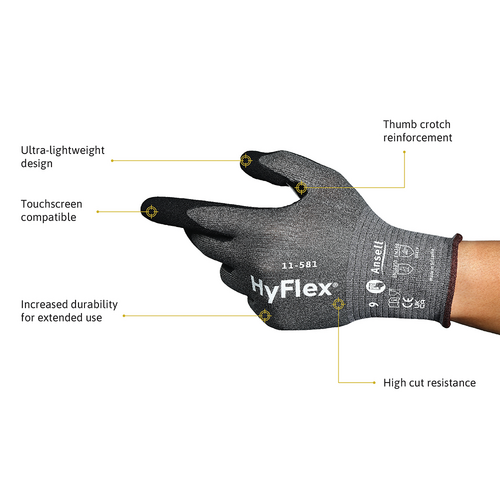 Increased convenience: In addition, HyFlex 11-581 protective gloves allow wearers to work with multiple touchscreen devices while keeping them on.