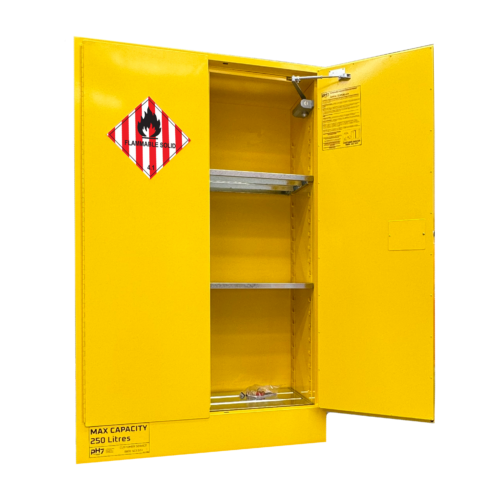 Indoor class 4 dangerous goods storage cabinet with 250L capacity.