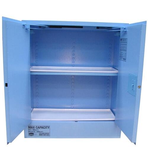 Each shelf is supplied with plastic spill trays to contain small spills and leakages