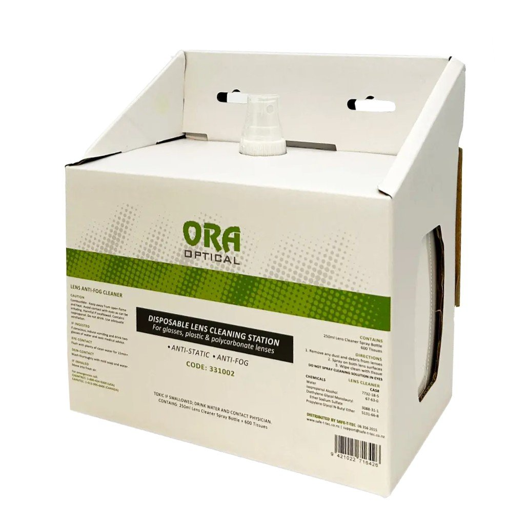 Lens cleaning station with 600 dry tissues and 236ml lens cleaner spray bottle