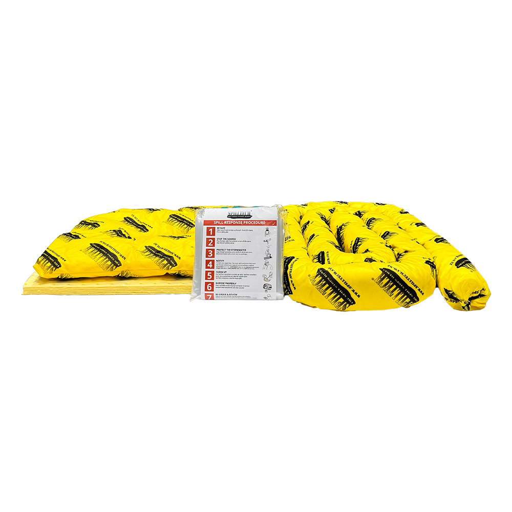 Chemical Spill Kit uses specially treated polypropylene absorbent designed to absorb a wide range of aggressive chemicals. Spill Kit absorbs up to 25L of a chemical spill.