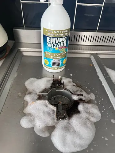 EnviroWizard Oven & Cooktop Cleaner is a non-caustic Industrial strength Oven & Cooktop Cleaner..